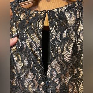 Great condition. This dress is stunning, would be perfect to wear to a wedding. The top lace part is a champagne color. The back has a keyhole with a latch at the top. Pet free, smoke free home