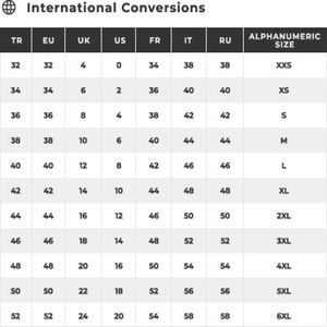 Size Conversion: XXS(EU 32 - US 0), XS(EU 34 - US 2), S(EU 36 - US 4), M(EU 38 - US 6), L(EU 40 - US 8), XL(EU 42 - US 10), 2XL(EU 44 - US 12), 3XL(EU 46 - US 14), 4XL(EU 48 - US 16), 5XL(EU 50 - US 18), 6XL(EU 52 - US 20). If you are in between size, please size up.