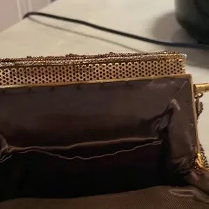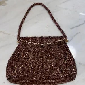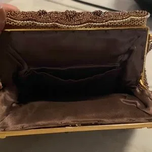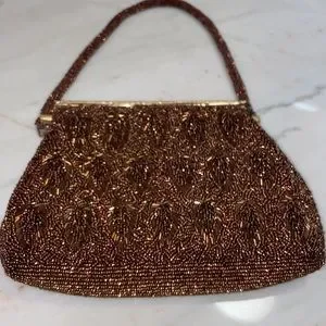 Vintage hand beaded bronze purse. This was my great grand mothers and I have used it a few times on a cruises. Very nicely made. Dimensions 8 1/2 x 6 inches