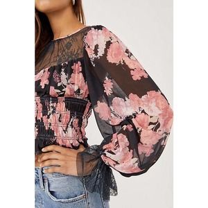 Free People Daphne Blouse Floral Print Lace Sheer Long Sleeve Blouse