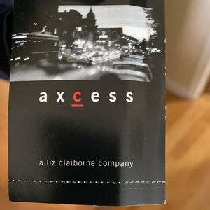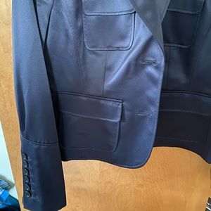 NWT navy satin blazer from Axcess by Liz Claiborne. Two button closure; four front pockets. Six button sleeves. Size 10. 100% polyester shell and lining. Great condition; smoke-free/pet-free home.