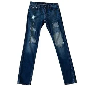 Hollister Stacked Skinny Jeans Ripped and Distressed knees Size 32L x 32W Good preowned condition