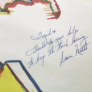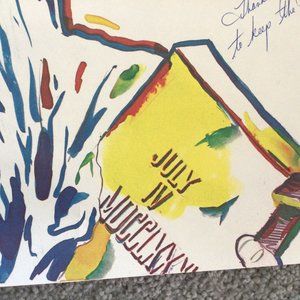 Vintage Bicycling To Save The Lady Liberty Poster April 10-June 4, 1985. Laguna Beach California to New York City. The poster commemorates the fundraising ride to help restore the Statue of Liberty. Measures approximately 22.25" x 29". Cream colored background with colorful design and illustration by Bob Myers. It is autographed by one of the riders, Dawn Motto. Has been stored in a tube. See photos.