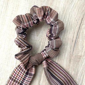 2 NWOT Handmade Brown Pink Plaid Scrunchies