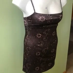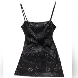 Urban Outfitters Ladies Black Celestial Sun Moon Stars Pullover Mini Dress S-p