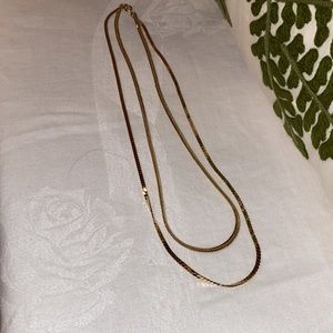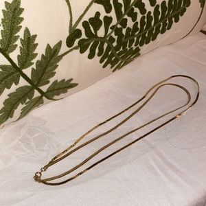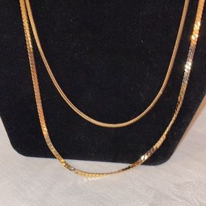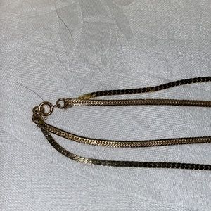 This necklace is so pretty. It sparkles in every direction. It is about 19” long. There are two strands. One is longer than the other. I have had this for over 20 years. It looks like new. I don’t know what type of metal this is because it has been so long ago when purchased. There are no markings on the chains or clasp. It certainly is stunning.