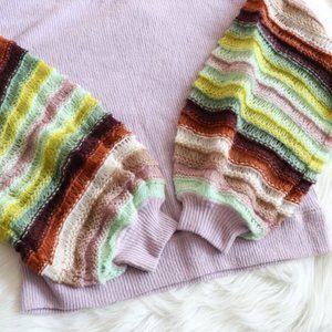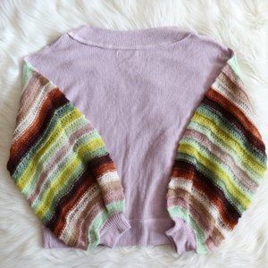 NWT Free People Mist Lilac Cha Cha sweater...so so pretty..the billowy sleeves are multi colored and look almost crocheted. Size M...but oversized.