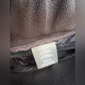 Polyester unlined, pockets, zipper hook and bar closure.