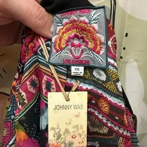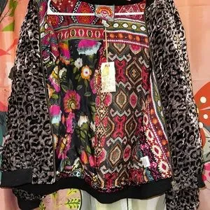 Beautiful Johnny Was lightweight quilted bomber jacket. Gorgeous silk lining. Size XXL but I’d say would fit a L relaxed up to XXL. Tags are attached. Definitely a stylish coat for spring or mild winter weather. I love this coat and hate to part with it but it doesn’t fit me the way I’d like. My loss your gain. If you have never owned any of the brands clothing then I suggest you treat yourself! Even better, treat yourself at a fraction of the cost! Wear it well!