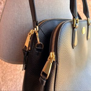Tory Burch double zip tote Robinson black pebbled leather MINT condition. Used a couple of times at most.