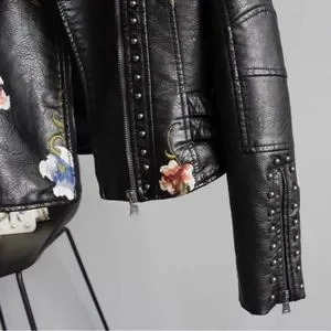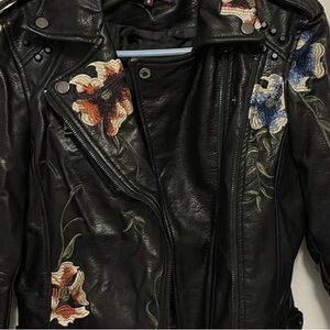 Vigoss Embroidered Floral Leather Jacket, Small, Black/Multi NWOT