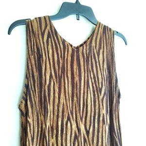 This feminine dress sports an abstract two-tone design print. The dress is further enhanced with a cape. Light stretch. Excellent pre-owned condition