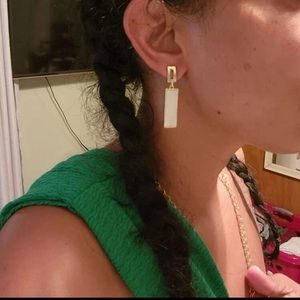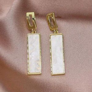 Elevate your look with these geometric rectangular white and gold drop earrings, designed with a clean, modern aesthetic. The sleek white panels paired with shiny gold-tone accents create an elegant, minimalist statement perfect for everyday wear or dressy occasions.