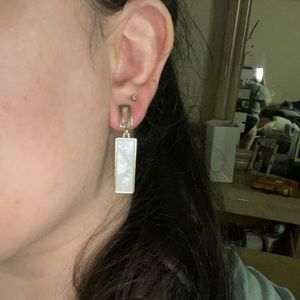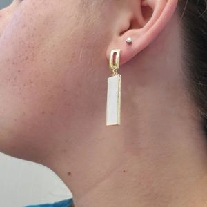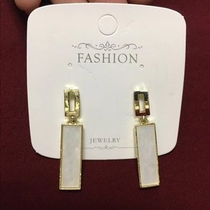 geometric earrings, rectangular earrings, white and gold earrings, modern jewelry, minimalist earrings, elegant drop earrings, statement earrings, trendy earrings, classy accessories, fashion jewelry, lightweight earrings, chic earrings, gift for her, contemporary style, gold tone earrings