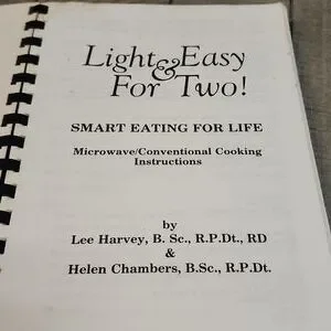 LIGHT AND EASY FOR TWO. COOKBOOK SMART EATING FOR LIFE. INSTRUCTIONS. NATIONAL BEST SELLER. ILLUSTRATED 170+ PAGES. Spiral bound in good condition.