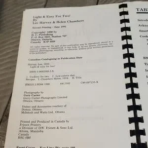 LIGHT AND EASY FOR TWO COOKBOOK 1991