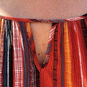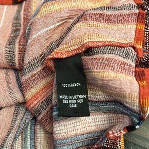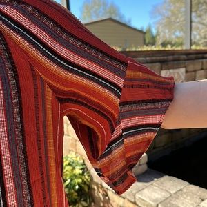 AGB ruffle sleeve blouse. Keyhole at neckline. Colors are dark orange, white, black, dark yellow, and blue. Crepe type material. Size XL. Pit to pit approx 22 inches. Length approx 24 inches. It has a little stretch to it. In great condition!