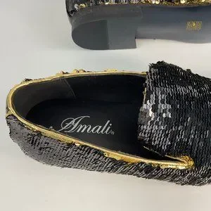 NEW AMALI Men's Slip On Gold/Black Sequins Loafers Flipp-428 size 15