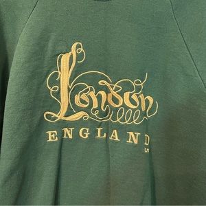 Green Crewneck Sweater Sweatshirt with Embroidered Letters "London England