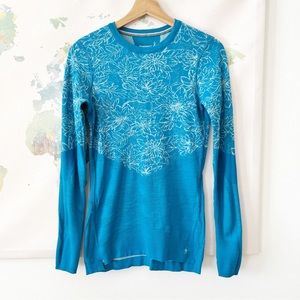 Smartwool Top Size Medium Intraknit 200 Crew Wool Blend Base Layer Floral Blue