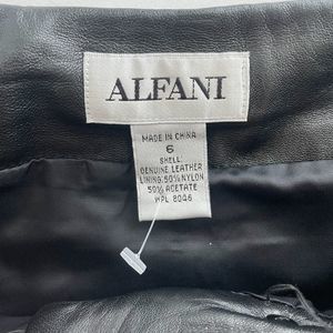 Vintage Alfani black 100% genuine leather floral embroidered mini skirt