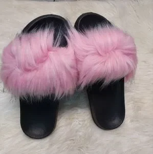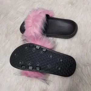 Pink Plush Furry Rubber Sole Indoor/Outdoor Slippers Size 8 (38-39 EU) NWOT