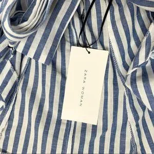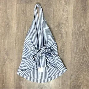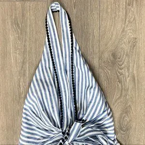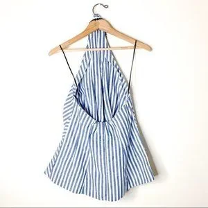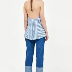 Zara Striped Tie Front Halter Top Blue & White Size Small