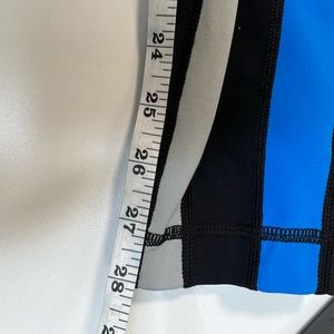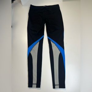 So flattering and COOL. These funky leggings are perfect for all of your workouts at the gym, outdoor activities, or showing school spirit if your colors are Blue/gray or Blue/black! Lots of stretch, measurements shown flat in photos. Mid rise, flattering style. Full length. Minor wear as shown but overall great used condition.