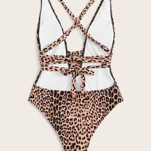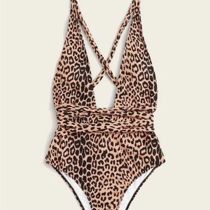 Shein Leopard Criss Cross One piece Bathing suit