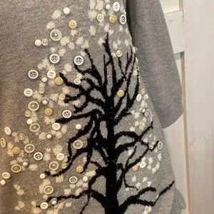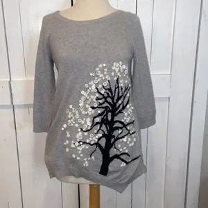 Anthropologie HWR Button Tree Grey Sweater