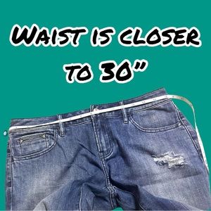 NWOT The Kooples distressed low rise skinny jeans in medium to light blue wash. Thinner Jean material than their usual styles. Low rise at 8”. Hits at the ankle with a 31” inseam. Waist measures closer to 30”. These would be a slouchier version of a skinny jean.