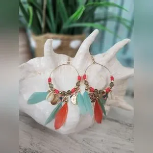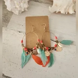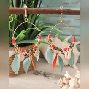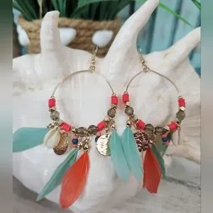 NEW Teardrop Feather and Shell Earrings