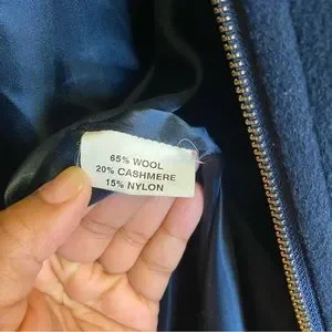 Coat is 65% wool 20% cashmere and 15% nylon. Good condition. No visible flaws.
