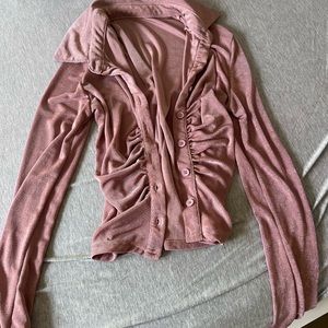 Shimmer Ruched Button Down Shirt