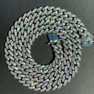 New Iced Out Miami Cuban Chain Solid 925 White