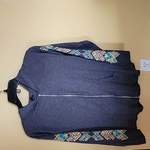 ANVIL lightweight pockets and hood sz L Navy blue. full sleeve Aztec print on sleeves. pit to pit 22 inches and length approximately 26 inches.