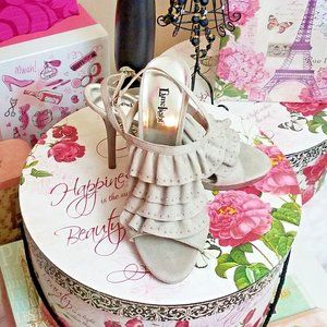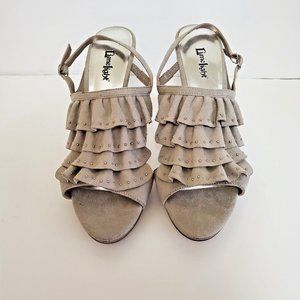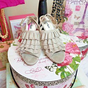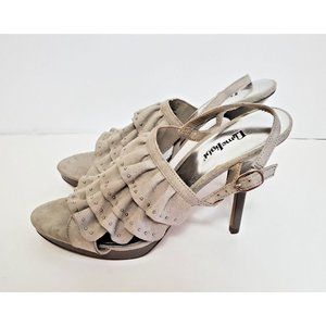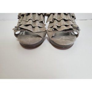 Limelight Women's Shoes 10 Ruffle 4" Heel Gray Suede Open Toe Sling Back Ella 232287. Very good condition...gorgeous shoes.