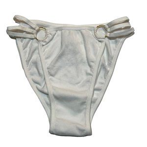 NWT AERIE High Cut Bikini Pantie Sz XL White Ribbed Gold Ring