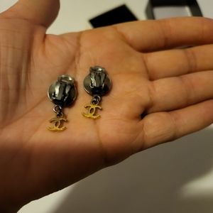 CHANEL Vintage 2tone CC Dangle Clip-on Earrings