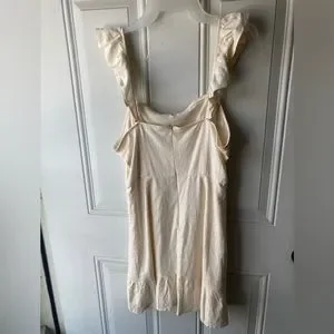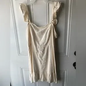 Off white beige forever 21 linen shirt dress. Size large but runs small. Straps can be warn on shoulders or off shoulders. Very flattering and cute on. Worn once for graduation. Very light and comfortable