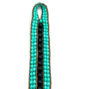 HAND CRAFTED Turquoise and Black Onyx Triple Cuff Leather Bracelet