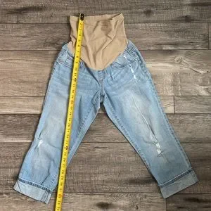 Indigo Blue Maternity Crop Jeans. Light wash. Size XS. Stretchy belly band.