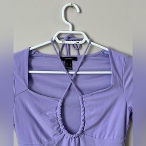 Women’s Forever21 Cut Out Front Tie Short Sleeves Square Neckline Top