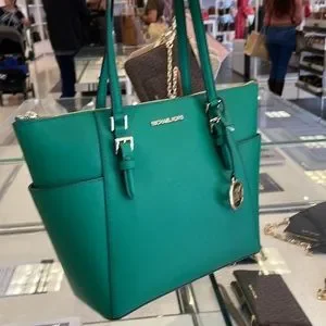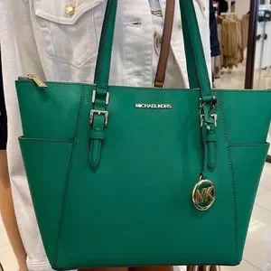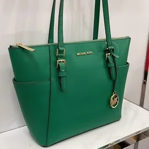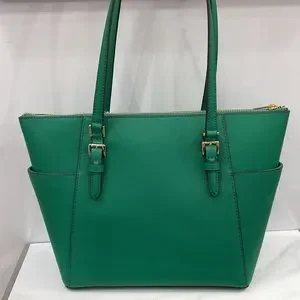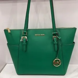 MICHAEL KORS Charlotte Large Leather Top-Zip Tote Palmetto Green
