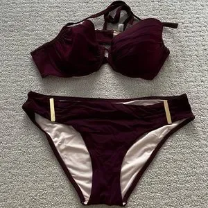 Victoria's Secret Dark Purple bikini set with gold clasps