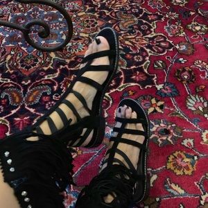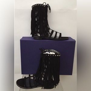 Stuart Weitzman black suede fringe benefit gladiator studded sandals, so pretty boho, perfect for springs and ready for summer, they use once or maybe 2 times, comfortable.not box!