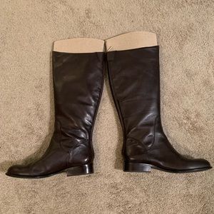 Franco Sarto chocolate brown leather boots, size 10! Shaft height: 16 in and heel height: 1.5 in