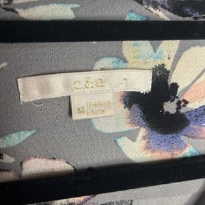c&e Gray Floral Blouse 3/4 Sleeve, Size M, EUC