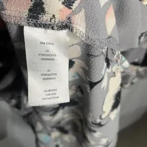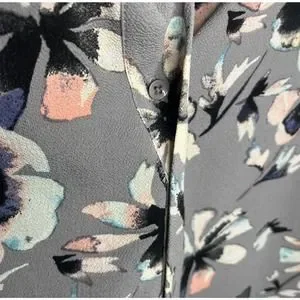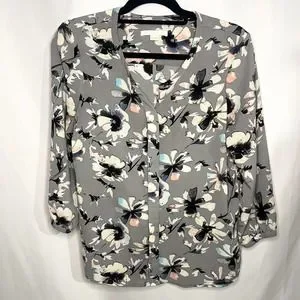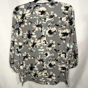 c&e Gray Floral Blouse 3/4 Sleeve, covered button up style (buttons only on top half), button cuff sleeve