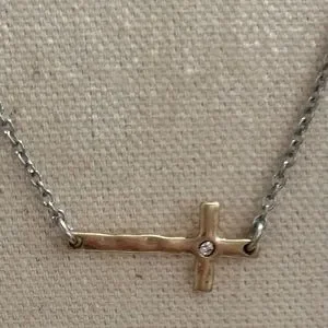 JK by Thirty-One “Whisper Cross Necklace” 2 tone silver/gold 16”+ 2” extenderNWT